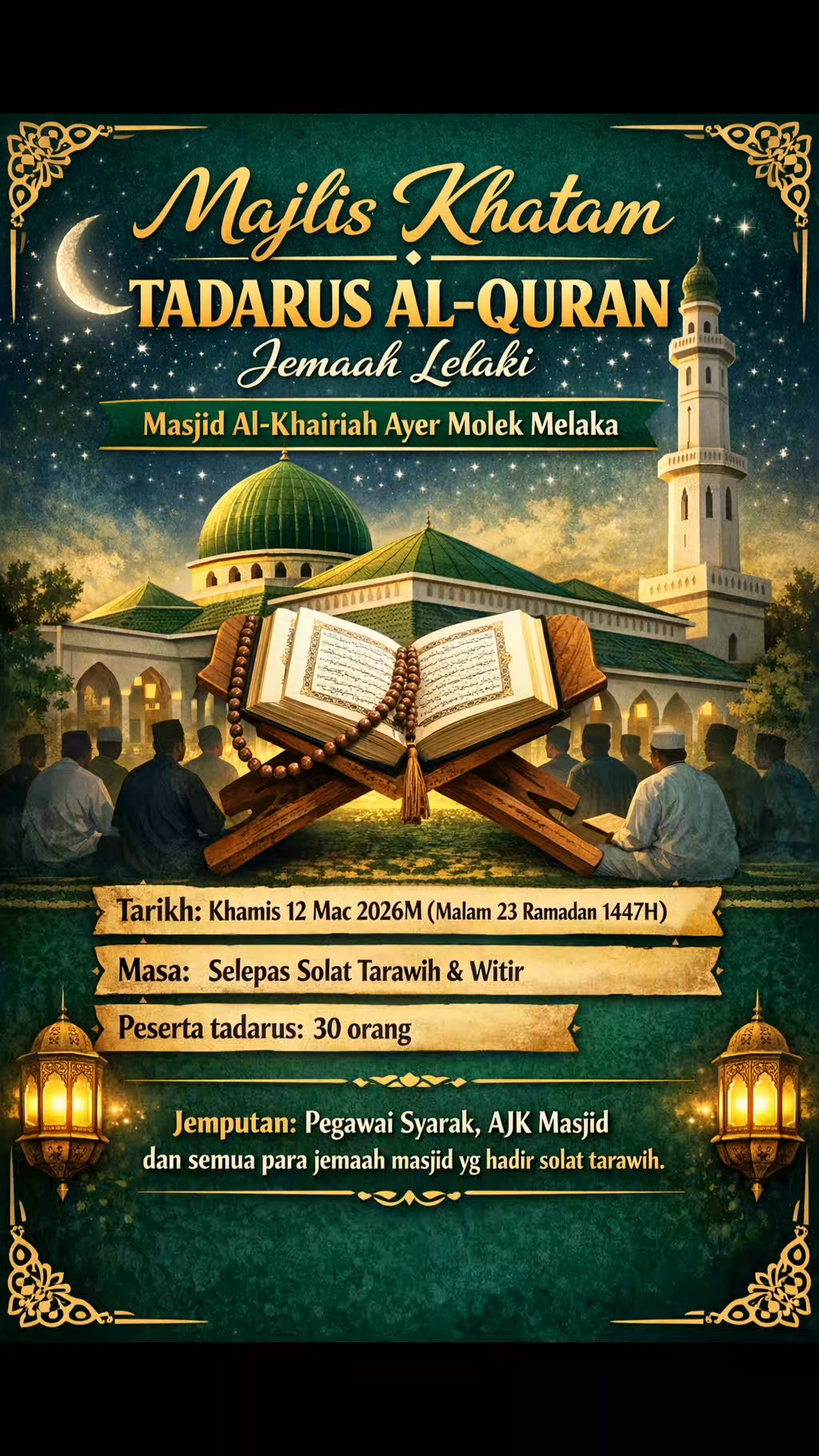 Tadarus Lelaki Di Masjid Al-khairiah Ayer Molek Melaka...